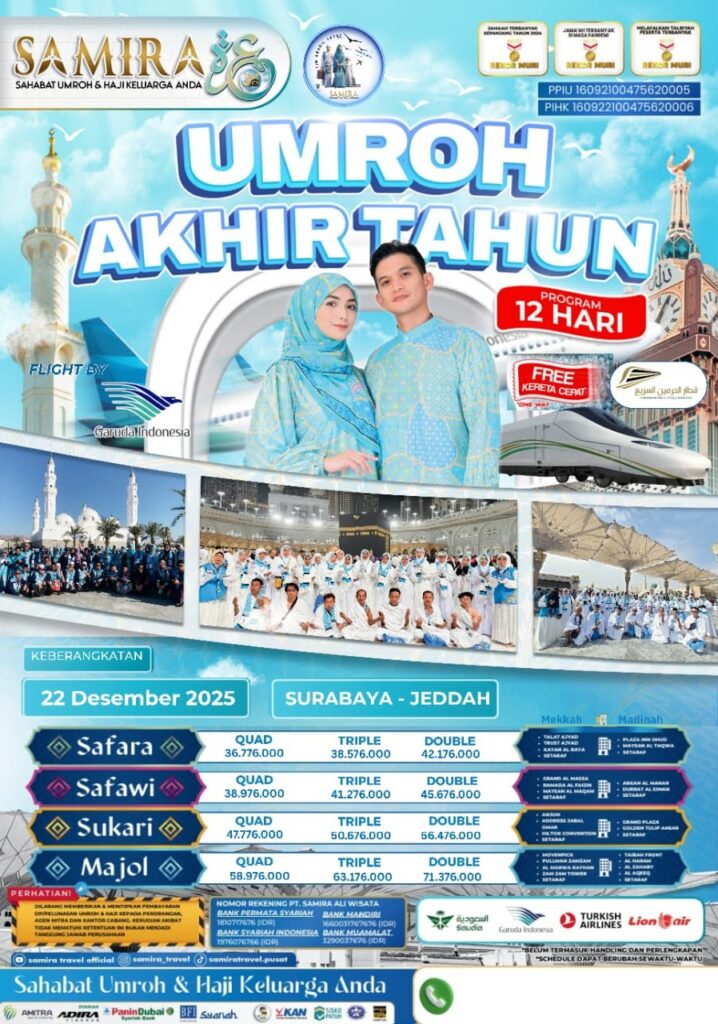 Sejak 2021 sampai Mei 2025 alhamdulillah samira travel menjadi travel dengan jamaah terbanyak di Indonesia. Pencapaian ini menandakan samira travel adalah travel umroh yang amanah dan bisa dipercaya untuk mewujudkan impian anda menjalankan ibadah umroh yang mabrur. Selama 2024 Samira Travel tercatat memberangkatkan 28.673 Jamaah.
